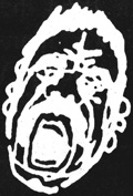 huge Afro-head shouting the blues, stencilled in white. A large mansion,